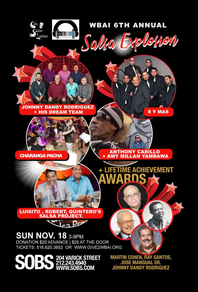 Charanga Pacha Y Amigos junto a Jhonny Dandy Rodríguez And His Dream Team, 8 Y Mas, Anthony Carillo, Amy Millán Yambawa, Luisito & Robert Quintero Salsa Project en una misma tarima en vivo en la Maraton Salsera a nombre del programa Con Sabor Latino en la emisora WBAI 99.5 FM de NY.